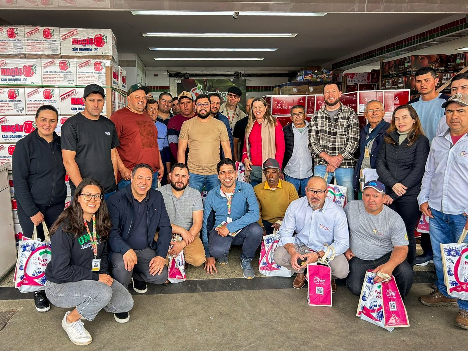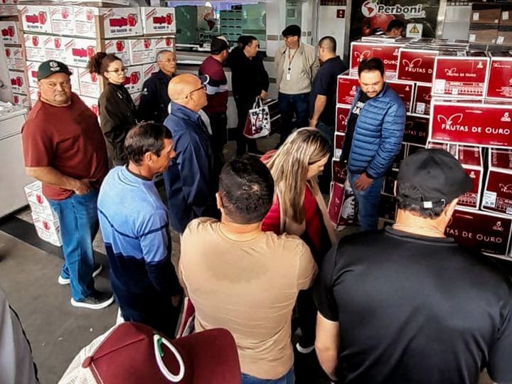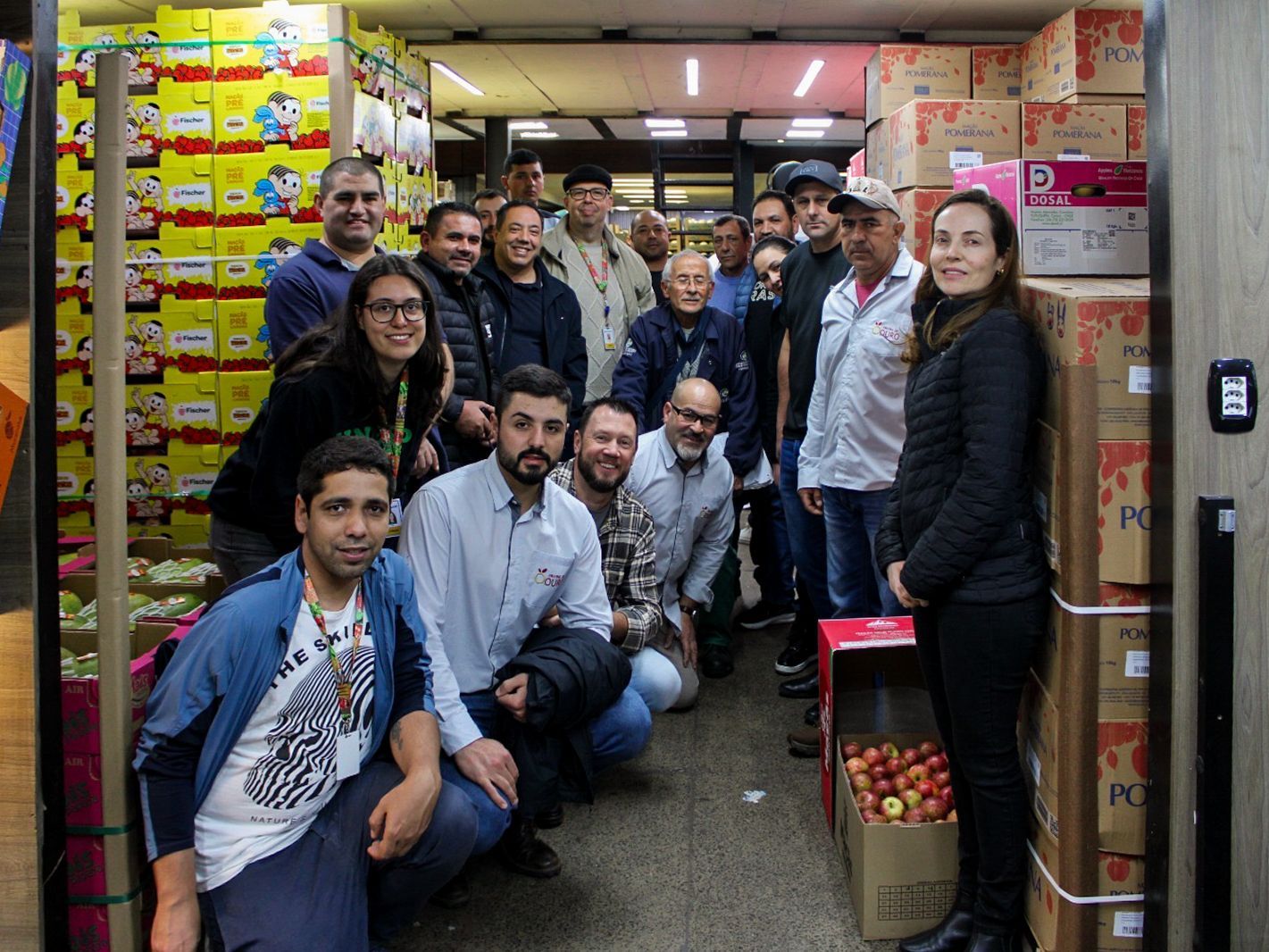 Em seguida os produtores visitaram alguns varejistas da ceagesp, especialistas no comércio da maçã, onde puderam ver as maçãs da cooperativa frutas de ouro sendo comercializadas no mercado, além de conhecerem outras marcas nacionais e importadas de maçãs ofertadas no ceagesp.