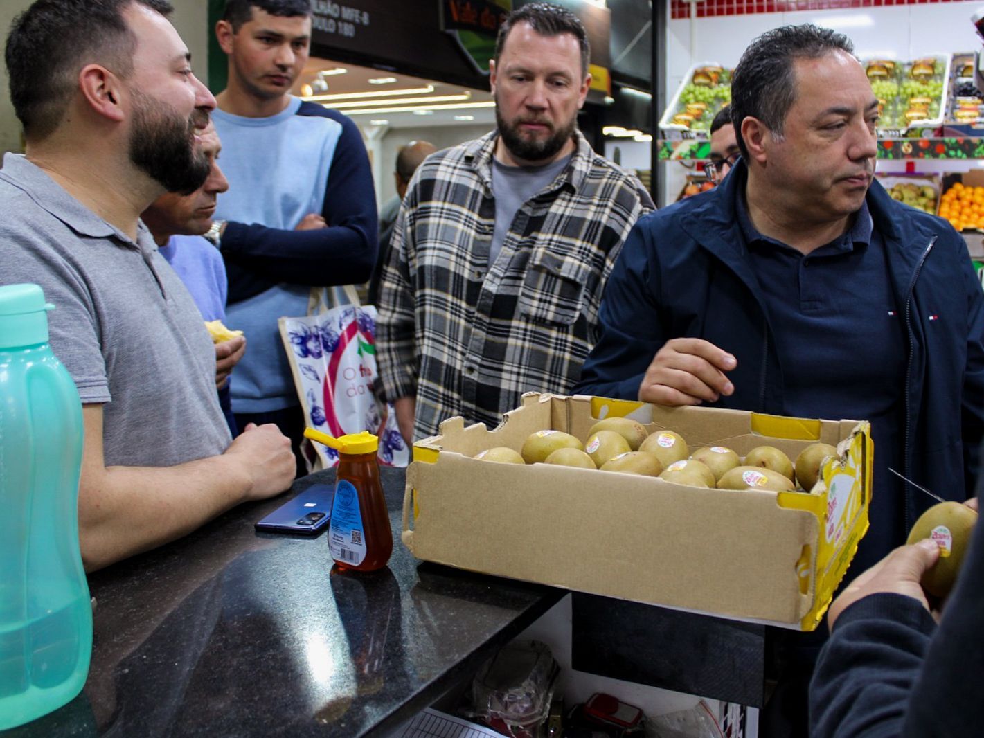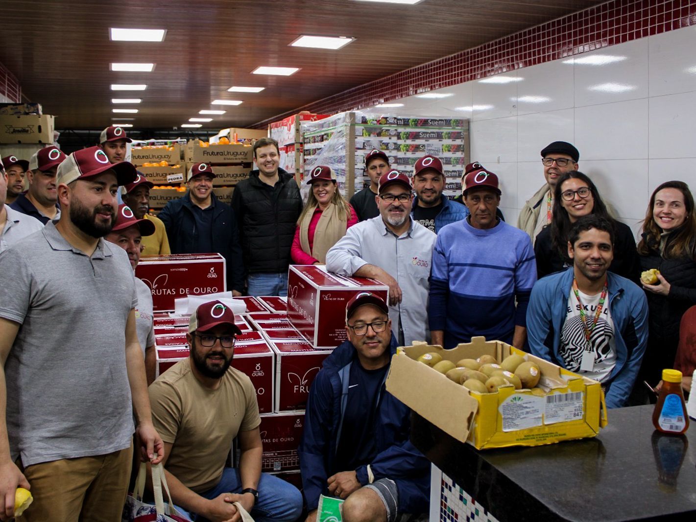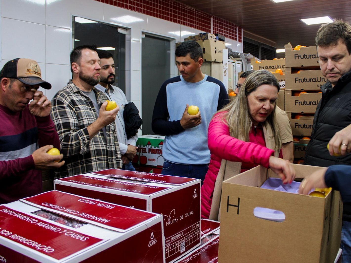 Em seguida os produtores visitaram alguns varejistas da ceagesp, especialistas no comércio da maçã, onde puderam ver as maçãs da cooperativa frutas de ouro sendo comercializadas no mercado, além de conhecerem outras marcas nacionais e importadas de maçãs ofertadas no ceagesp.
